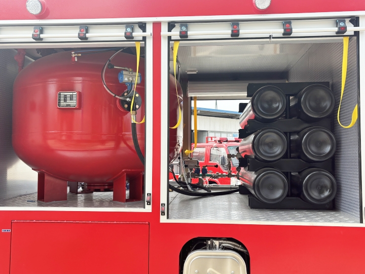 載液量:水罐2.7噸、泡沫液罐2.05噸、干粉罐2立方米。