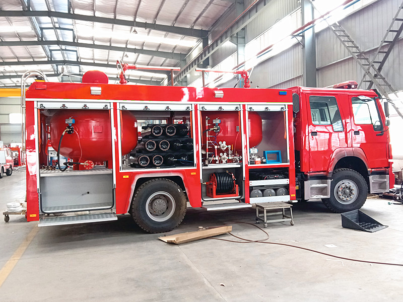 干粉車的布局相比于其他常規(guī)車型就要更加的復雜了、需要用到真空壓力的干粉罐、氮氣瓶組、以及相關(guān)的管道系統(tǒng)、友鏈這些東西才能將干粉通過細長細長的干粉槍給打出來、正常情況下它的射程距離也是相對水罐要小的、盡管壓力相當大。但是畢竟是干燥的粉劑、再者而言、盡管射距不遠。但是屬于電力火災的克星、可以有效的進行破滅、甚至杜絕它的再次復燃。是非常強大的!